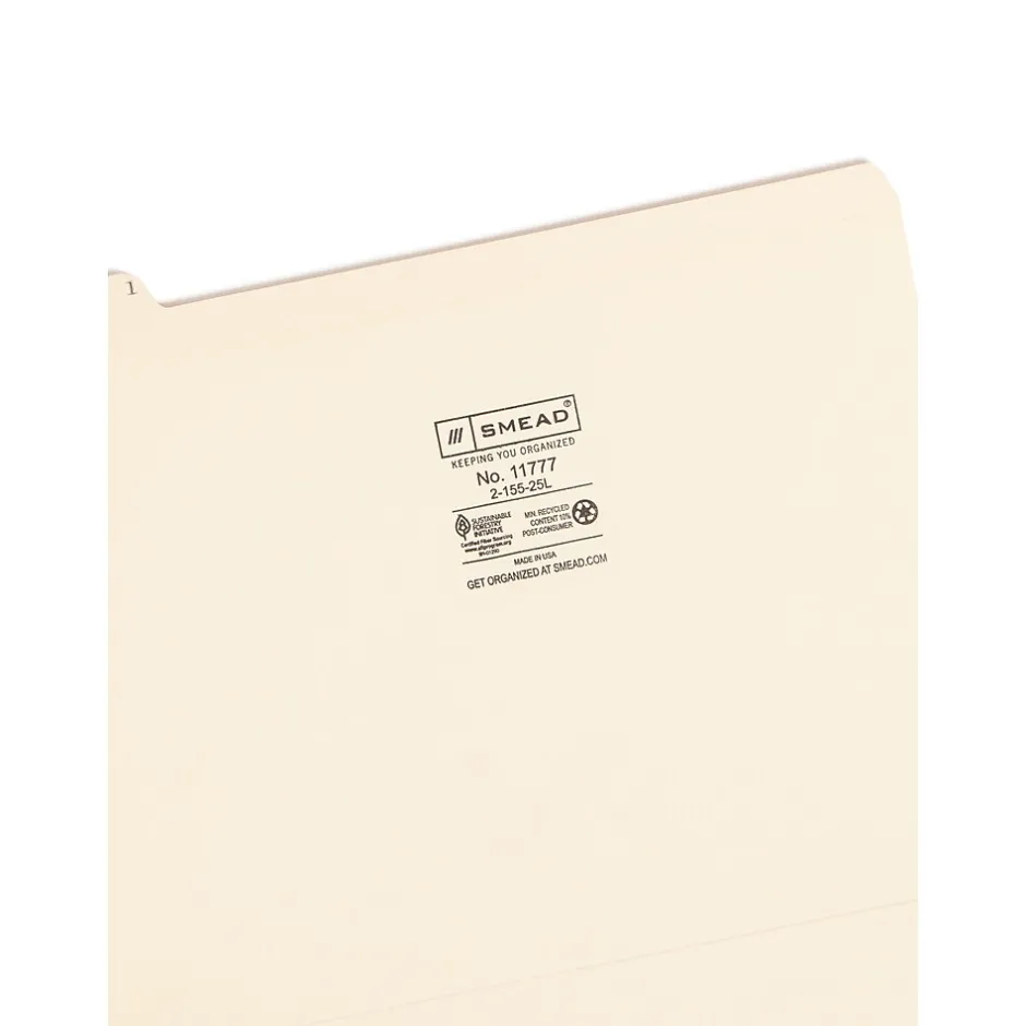 Get documents organized by sorting them into these letter-size alphabetic manila indexed file folders. The 11-point manila stock construction protects contents from everyday wear and tear, while the assorted tab positions make these folders simple to browse. This set of Smead letter-size indexed file folders features reinforced 1/5-cut tabs with bold preprinted letters for easy reading.