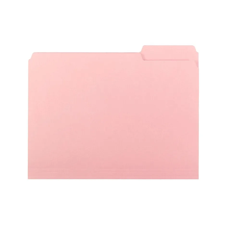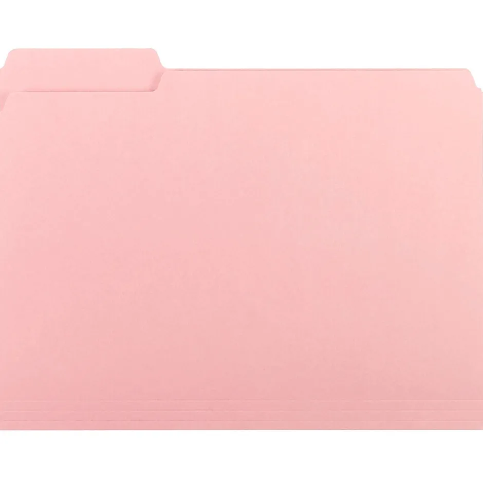 Reduce paperwork clutter by using these letter-size interior file folders. With assorted tab positioning, these folders are ideal for use within a single hanging folder, and the eye-grabbing pink color helps speed up the retrieval process. These Smead 1/3-cut tab file folders are constructed from 11-point stock for increased strength and durability, keeping important documents protected.