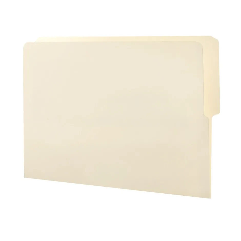 Durable 11 pt. manila folder has full cut double-thick top-tab for durability. Scored for 3/4″ expansion. 100 per box. Measures 11-3/4″W x 9-1/2″H overall; 9″H body.