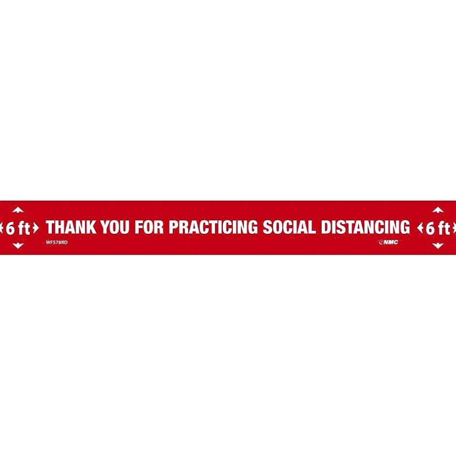 - Floor sign with “Thank You for Practicing Social Distancing 6 ft” message