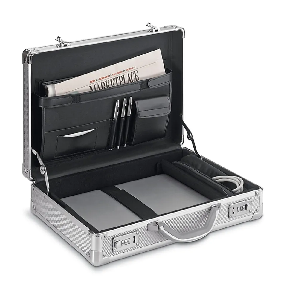 Work And Travel: This sleek, stylish hard sided briefcase features a 17.3″ laptop compartment with adjustable spacers, an interior organizer section, and file compartment. Ideal for business travel.
