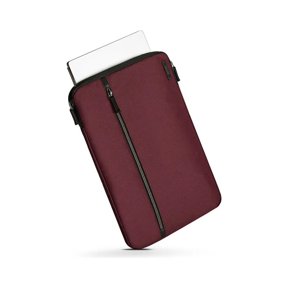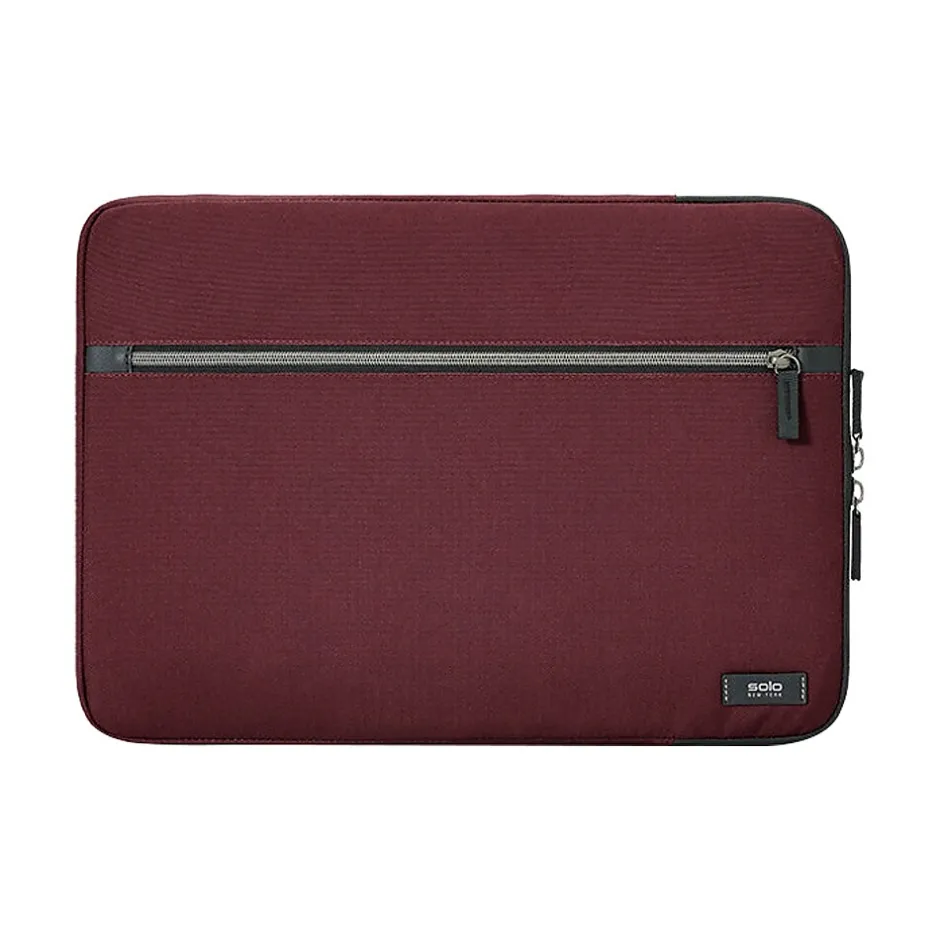Stylishly protect your laptop with the Solo New York Mott sleeve. This laptop sleeve exudes timeless, urban cool red. Staying true to Solo’s signature DNA, the Mott fuses fashion and function with protective padding and a scratch-resistant lining. This recycled laptop sleeve not only helps eliminate plastic bottles from landfills, but all the tags, strings, and stuffing are made from 100% recycled and biodegradable materials.