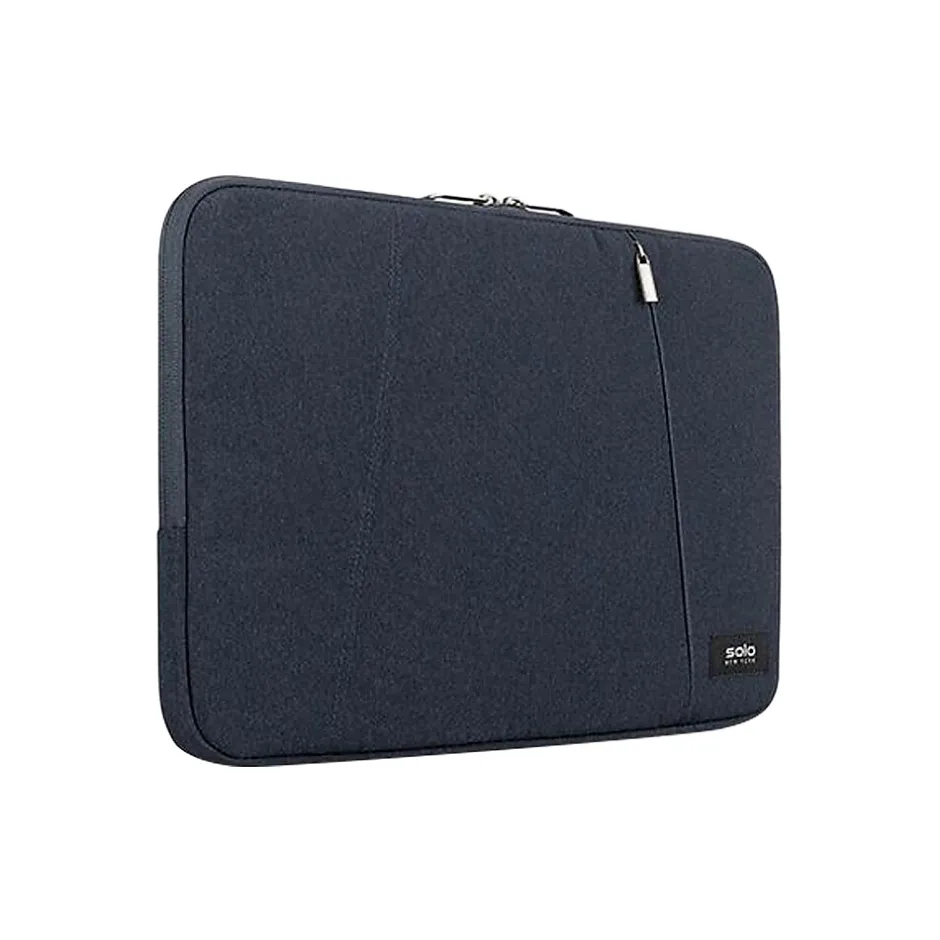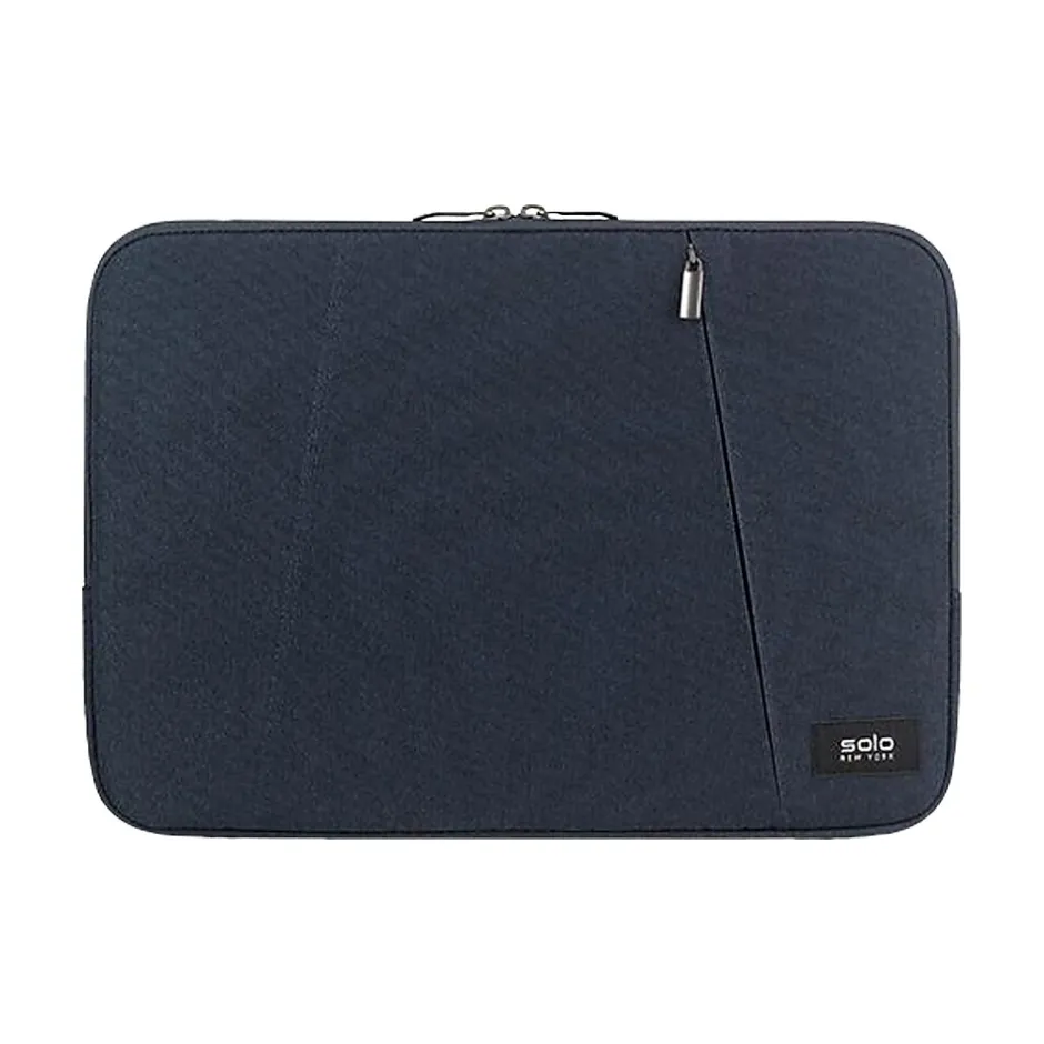 Stylishly protect your laptop with the Solo New York Oswald fully padded laptop sleeve. The sleeve is built with city functionality in mind and offers an uncompromising style. It is designed in urban-cool navy with scratch-resistant lining, zippered main compartment, and front quick-access pockets.