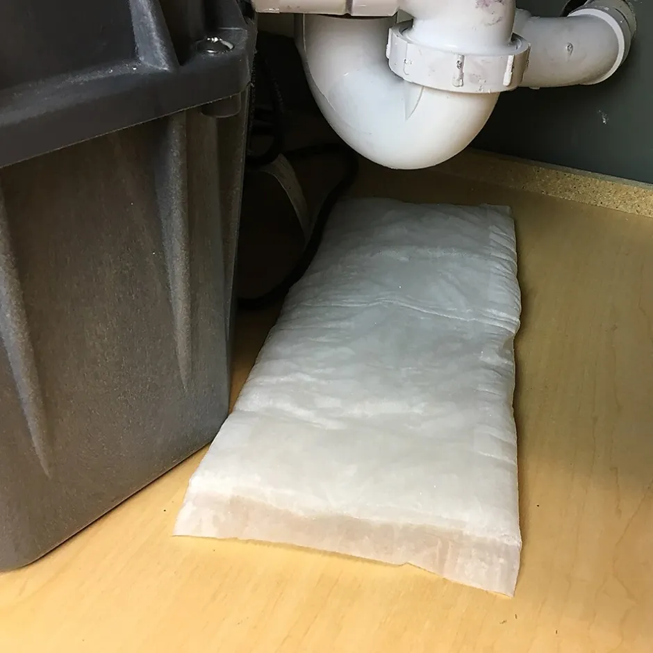 - Mats absorb water on contact and convert liquid to gel