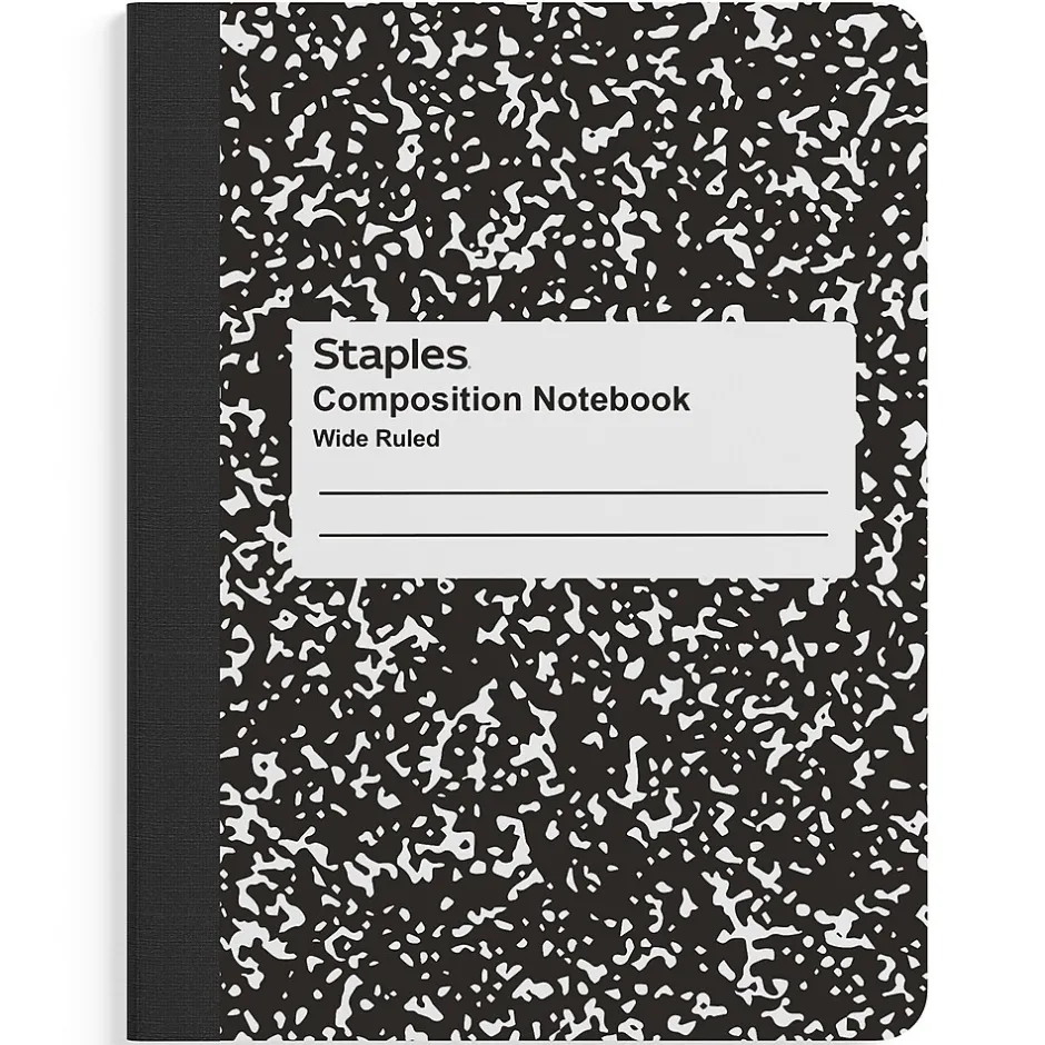 Carry this composition notebook in a briefcase or backpack for quick access to notes. With 100 pages, there’s plenty of room for all your ideas, poems, doodles and notes, while the wide-ruled spacing lets you write with larger letters. This Staples Business Essentials 7.5 x 9.75-inch black and white wide-ruled composition notebook is a perfect size for taking on the go.
