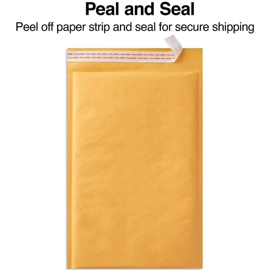 Stock your shipping department with these bubble mailers. The kraft paper exteriors deliver a professional appearance, while the bubble padding cushions against bumps and drops. Each envelope features a self-adhesive closure for quick, hassle-free setup. These professional 11.25 x 15-inch kraft bubble mailers come in a 100-pack, providing a perfect option for busy mail rooms and warehouses.