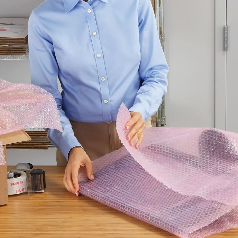 Protect small and large electronics with this 3/16-inch extra-wide bubble roll. This protective bubble roll reduces 90 percent of static electricity in a matter of seconds, and the lightweight nylon barrier bubbles minimize air loss, which ensures effective cushioning so all contents remain secure during the shipping process.
