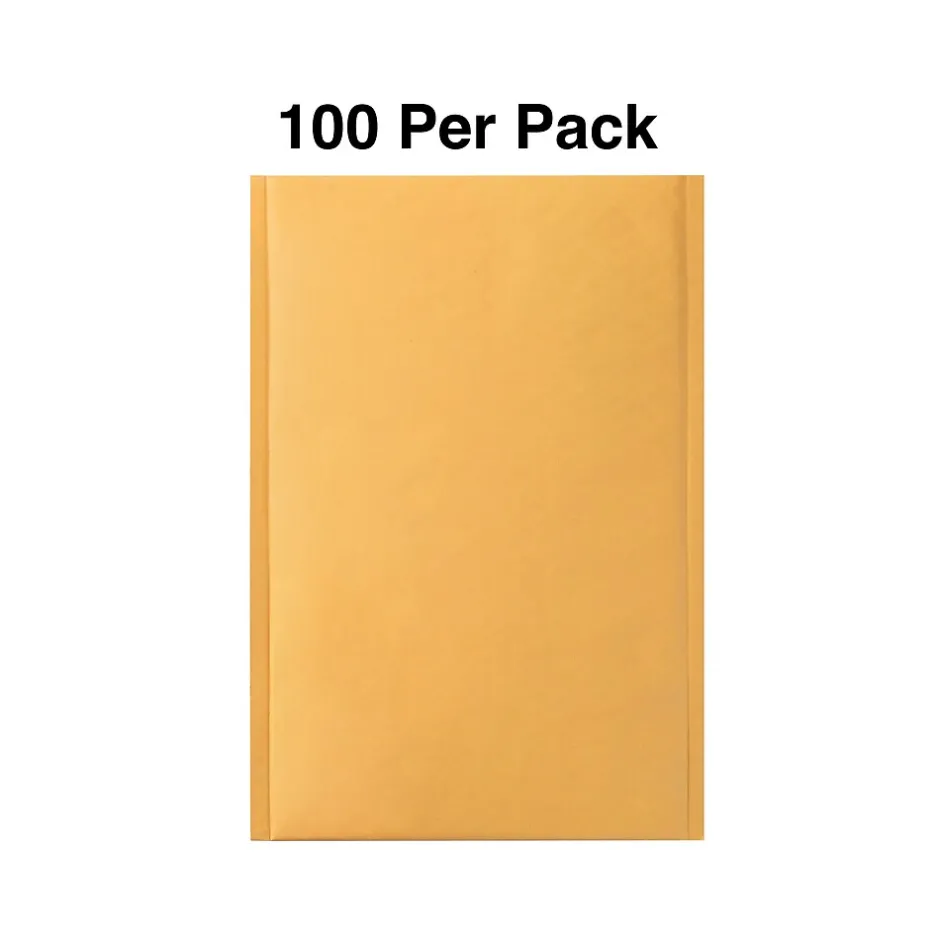 Utilize a lightweight shipping solution with these medium bubble mailers. The peel-and-seal adhesive strip lets you quickly secure products during the packaging process, while the bubble padding cushions merchandise for added protection. These professional 7.88 x 10.75-inch kraft bubble mailers come in a pack of 100 to accommodate heavy volume, and the natural kraft finish provides a professional look.