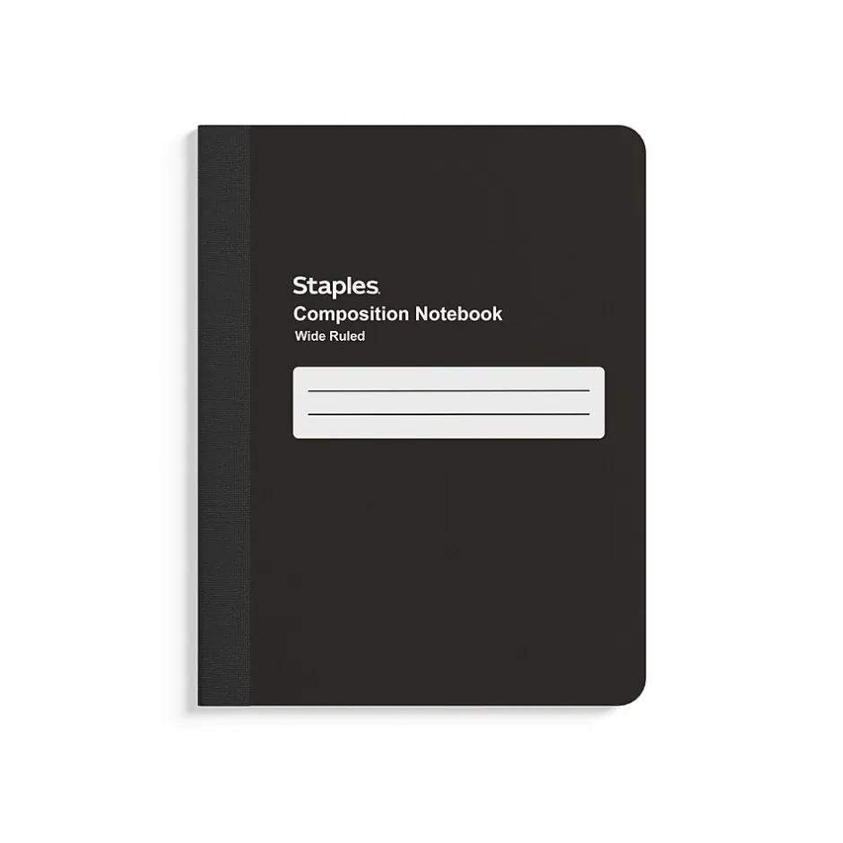 Provide ample space for recording your thoughts with this black poly composition notebook. The wide ruling lets you create clear notes for easy reading, while the poly cover protects the sheets from damage. This Staples 7.5 x 9.75-inch black poly composition notebook features a standard-sized construction, letting you keep notes well organized.