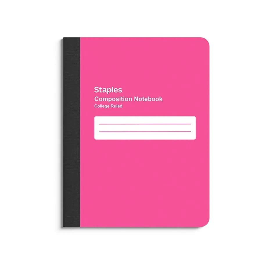 Stay organized with this college-ruled pink poly composition notebook. The poly cover protects pages from getting dirty or spilled on while offering a vibrant look, and the college ruling offers ample space for recording all your thoughts or lecture notes. This Staples 7.5 x 9.75-inch pink poly composition notebook has a smooth binding to resist snagging and lost pages.