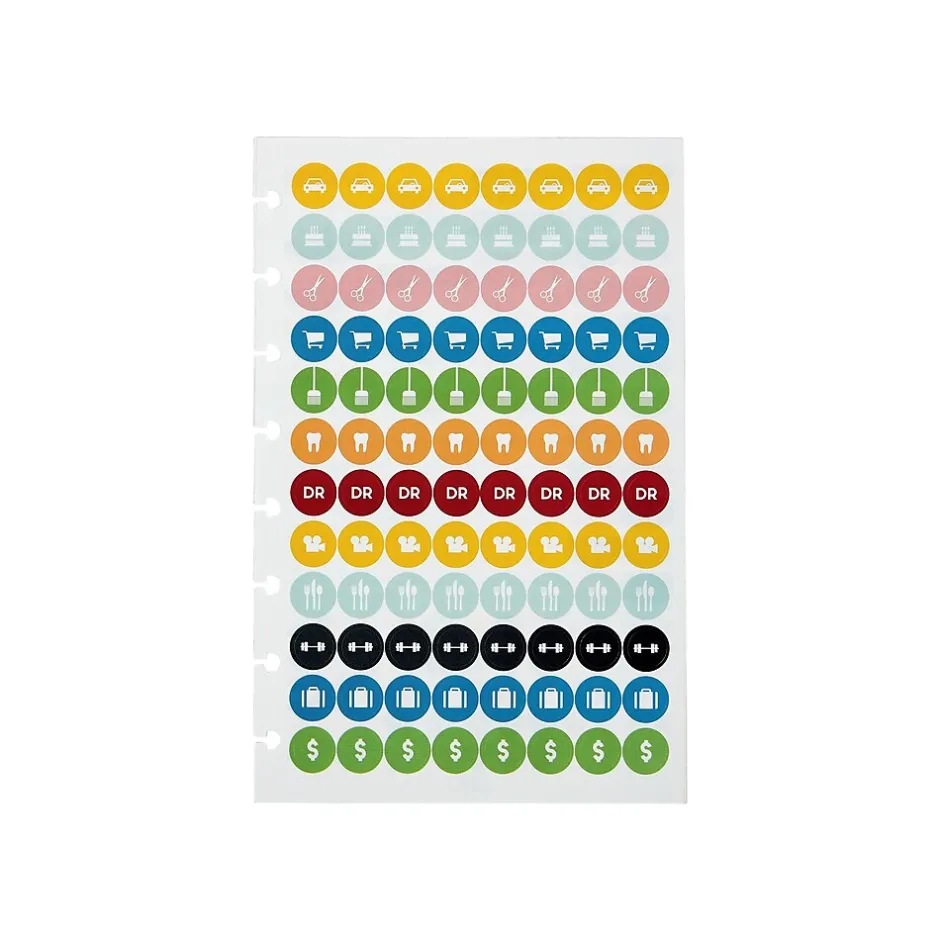 - Stickers in assorted designs, sizes, and colors help to organize files, documents, or planners and assist with easy identification of special projects or events