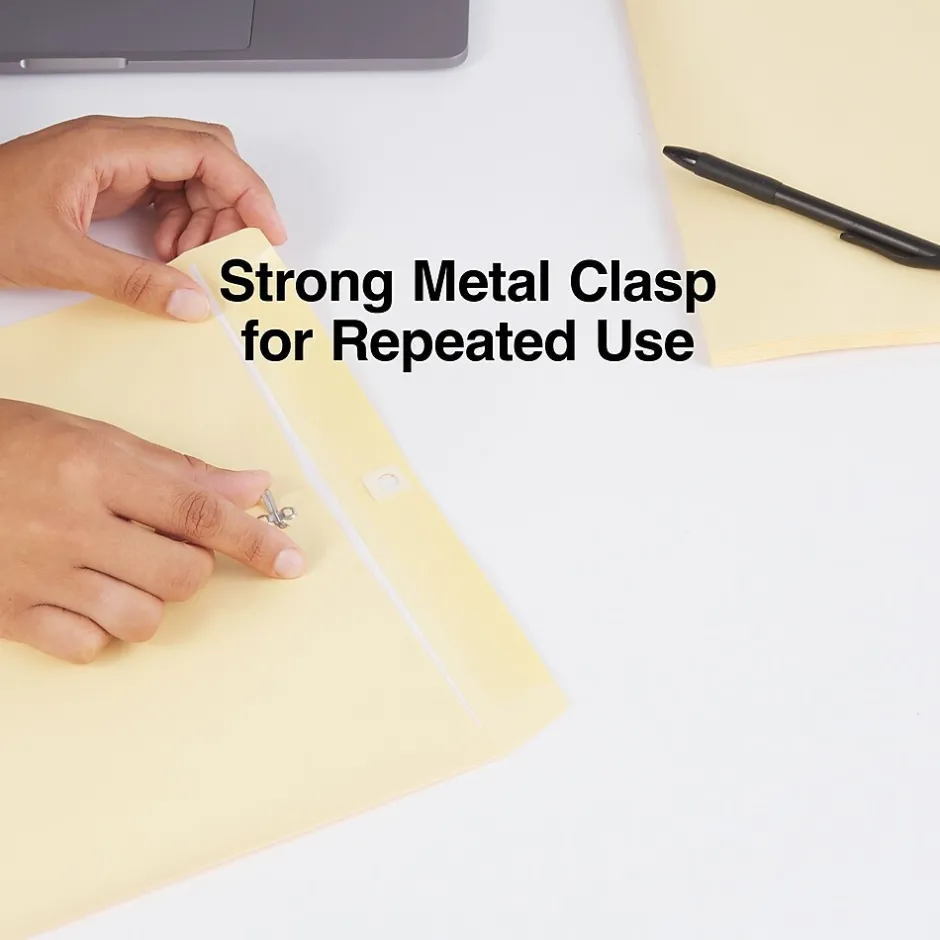 Seal documents securely with these Staples extra-heavyweight manila clasp envelopes. Each envelope is made with 32-pound manila stock, letting it stand up to the wear and tear of daily use, while the sturdy metal clap lets you reuse the envelopes as needed. These Staples extra-heavyweight manila clasp envelopes feature an adhesive strip on the flap that lets you seal important papers securely away.
