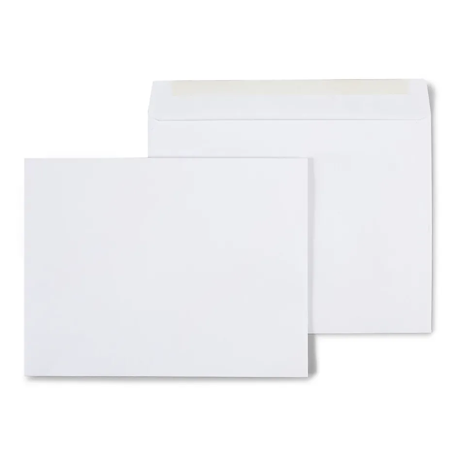 Send large packets and catalogs easily with these white wove side-opening booklet envelopes. Each one has a flap coated with moistenable glue for easy sealing, while the side-opening design makes it easy to insert and remove large documents. These Staples side-opening booklet envelopes come in a box of 100 units and are constructed with 28-pound wove paper for a clean, professional look.