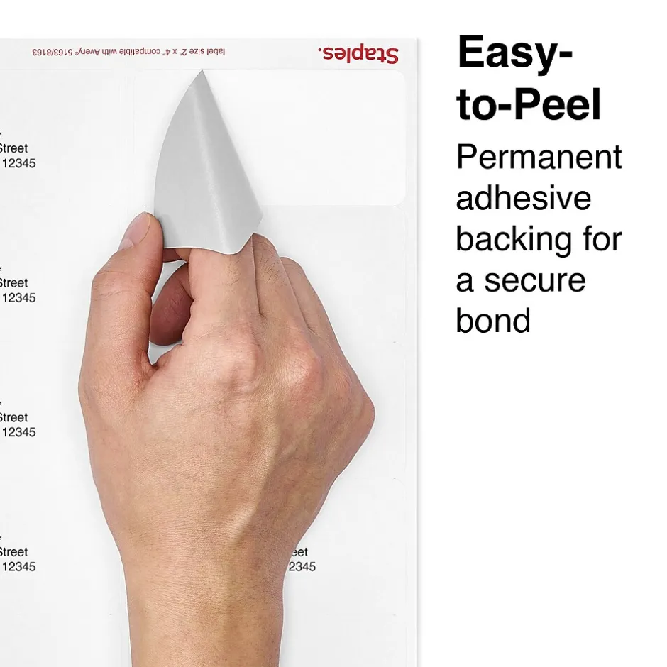 Give your mailings a custom look with these Staples inkjet/laser shipping labels. The simple format works with a range of programs, including Microsoft Word and Avery LabelPro, and each sheet is designed for automatic feeding in a range of popular printer models. With their white color, these Staples inkjet/laser printers make text easy to read.