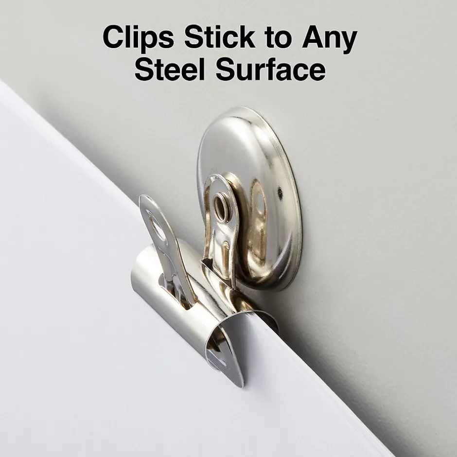 - Magnetic bulldog clips stick instantly to any steel surface