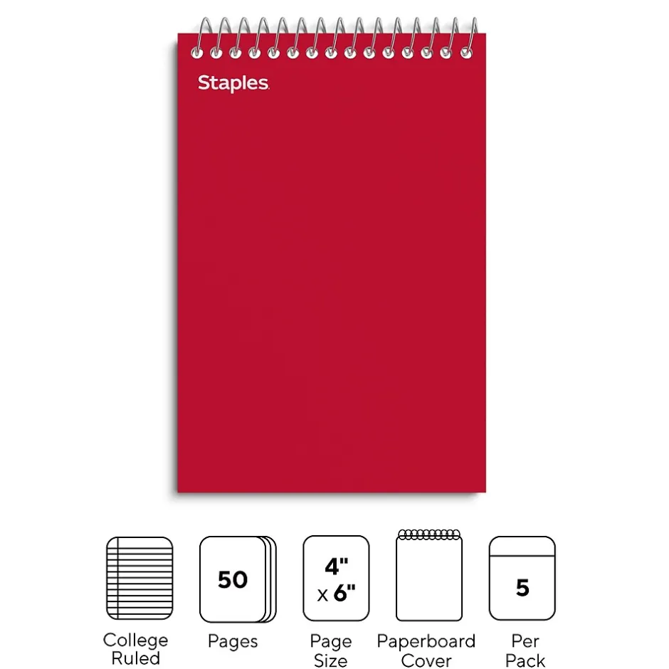 Keep track of ideas with these spiral memo pads. The college ruled spacing makes the most out of each sheet for notes and sketches, while the spiral-bound design lets you turn pages to quickly find information. With 50 sheets in each pad, these TRU RED Business Essentials 4 x 6-inch assorted spiral memo pads are ideal for stowing in desk drawers and bags.