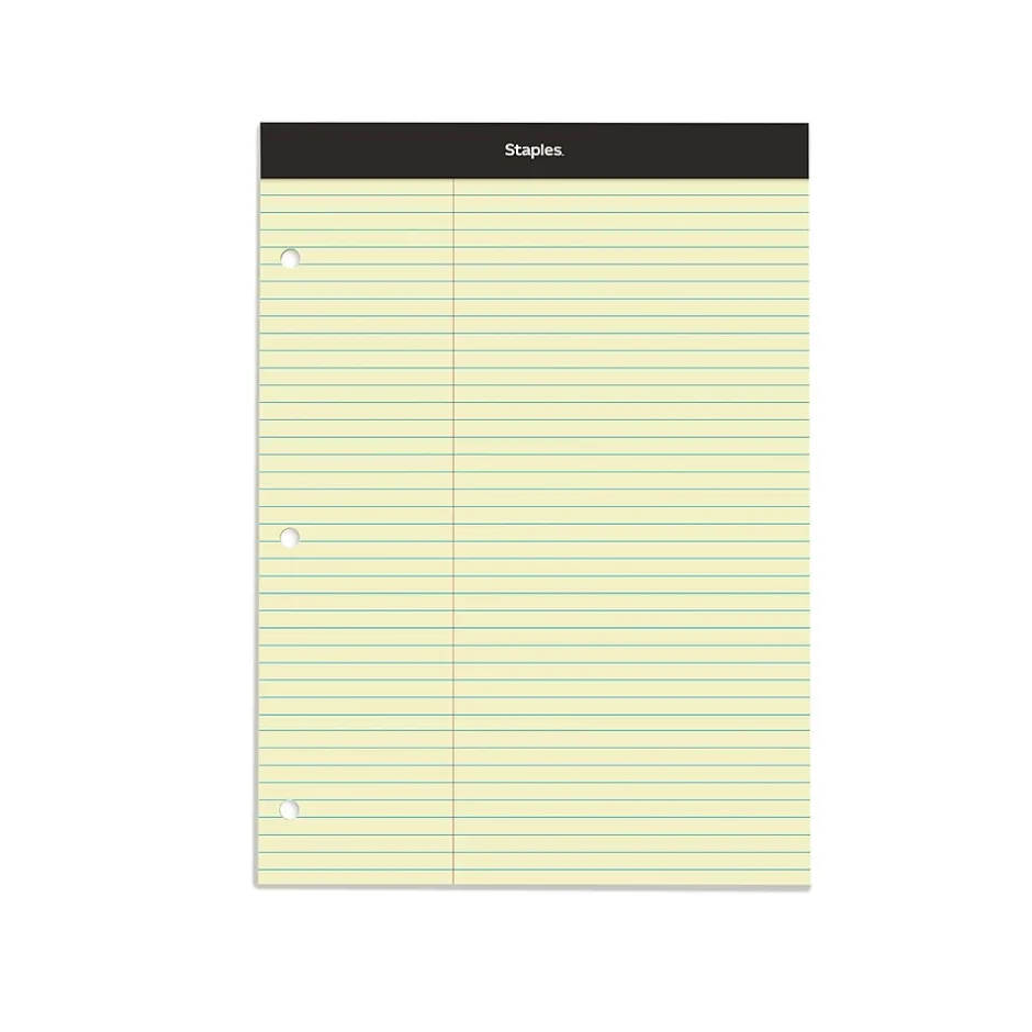 Furnish your work desk with this canary 100-sheet law ruled notepad. Convenient perforations let you cleanly peel off a page, while the law-ruled pages let you easily include notations and points of order in the wide margins. This Staples 8.5 x 11.75-inch canary law ruled notepad features top binding so you can flip through the pages and find information quickly.