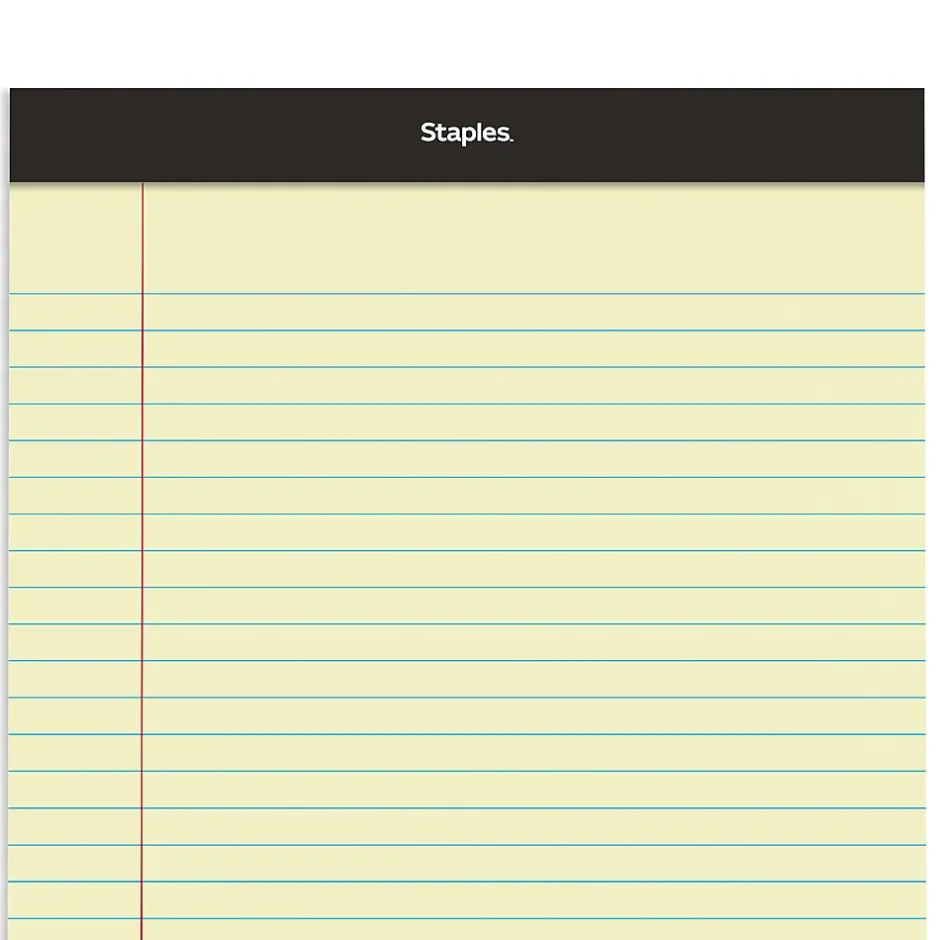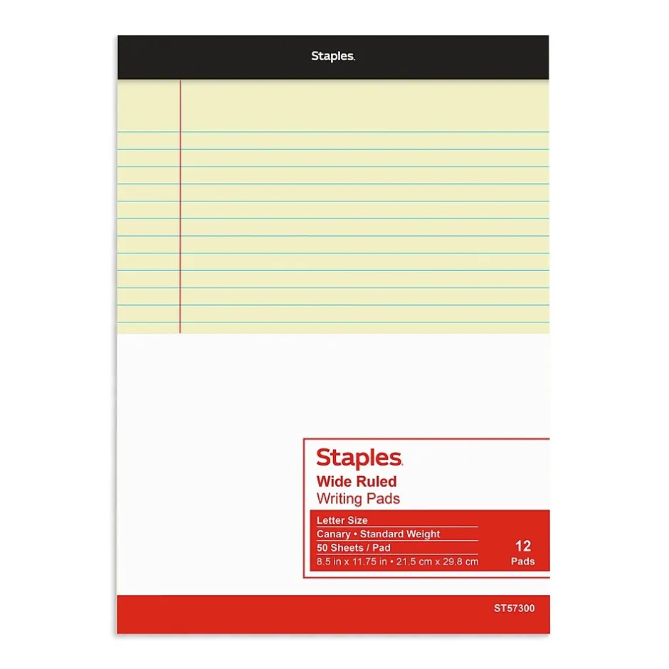 Staples wide-ruled yellow letter pads measure 8.5″ x 11.75″ and are micro-perforated for neat and easy sheet removal. These notepads are easily transportable and help you keep your writing neat and organized.