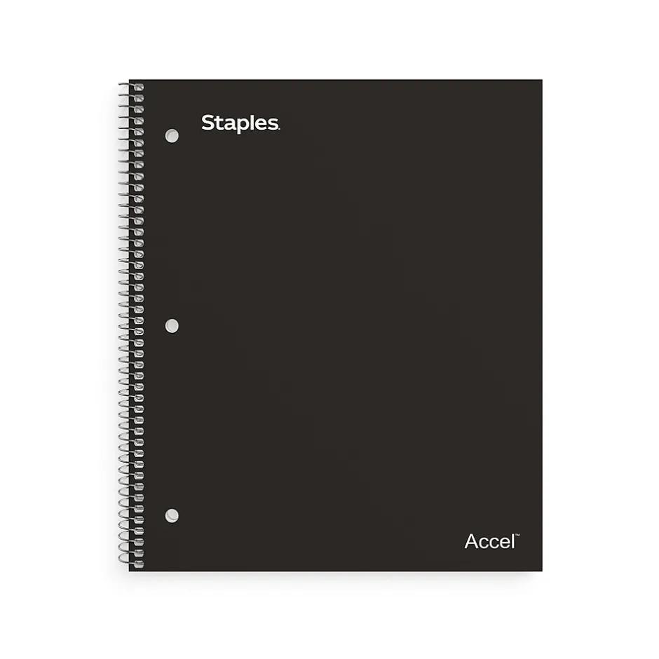 Keep related information together with this 2-subject notebook. The 120 college-ruled sheets let you record lengthy notes, making the most of your space, while the perforated design offers clean page removal. This spiral-bound Staples Premium 8.5 x 11-inch black poly 2-subject notebook lays flat for full page access, and the durable polypropylene cover protects against light spills.