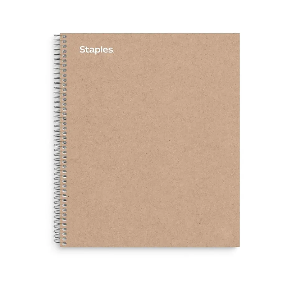 Archive important notes and reports with this 150-sheet notebook. Three pocket dividers store loose papers, while the perforated college-ruled pages allow for easy removal and optimum use of space. This Staples Premium 8.5 x 11-inch brown 3-subject notebook features a solid kraft board cover to resist damage, and the spiral spine lays flat for easy opening and writing.