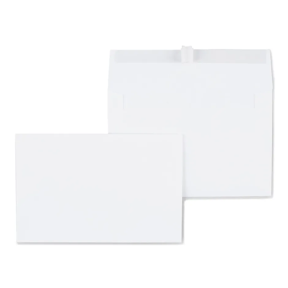 Protect mail with these Staples EasyClose white greeting card envelopes. Each one is easy to close by removing the strip, and these envelopes don’t require licking or a sponge to seal, while the 24-pound white wove paper offers durability and a light background to contrast against dark text and images for strong readability. These Staples EasyClose white invitation envelopes come in a pack of 100, so stocking up the supply closet is simple.