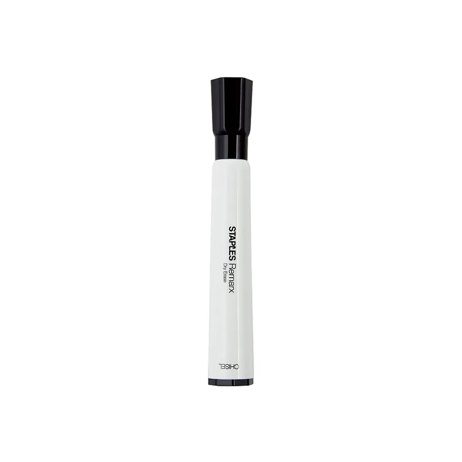 Organize your thoughts or write down quick reminders with these Staples Remarx dry-erase tank markers. The chisel tips let you choose between fine and broad lines, keeping your writing visible on whiteboards of all sizes. The low-odor, nontoxic ink makes these markers ideal for use in classrooms. Featuring rich black ink, these Staples Remarx dry-erase makers ensure your words and drawings are easy to see.