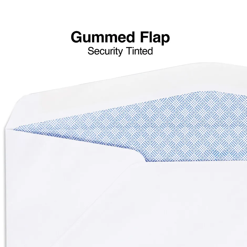 Send bills, invoices and payments securely through the mail with these #10 double-window envelopes. Security tinting on the inside keeps personal information shielded from view, and the gummed closures ensure contents stay safely inside of each envelope. Constructed from white woven paper, these #10 double-window envelopes stand up to the rigors of the mailing process.