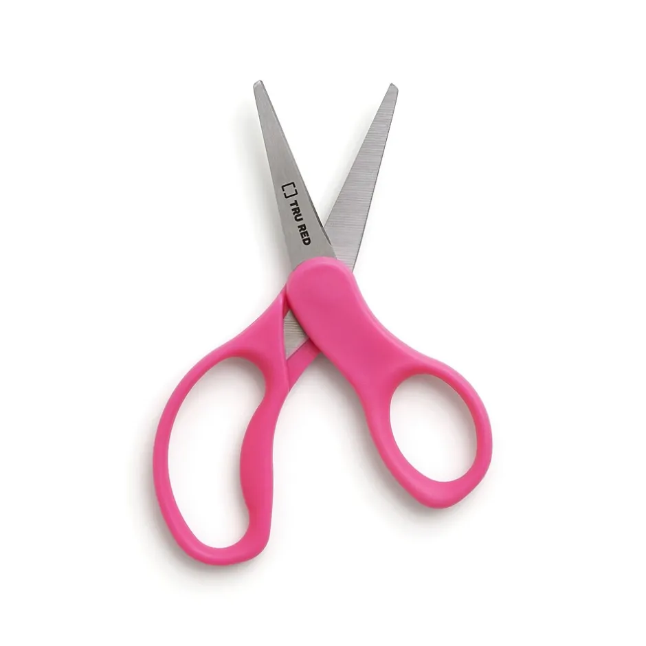 Supply your classroom with a convenient 12/pack of these Staples 5-inch pointed-tip scissors. Ergonomic handles promote comfort and allow ambidextrous use, while the stainless steel coating helps enhance blade durability for reliable trims and cuts.