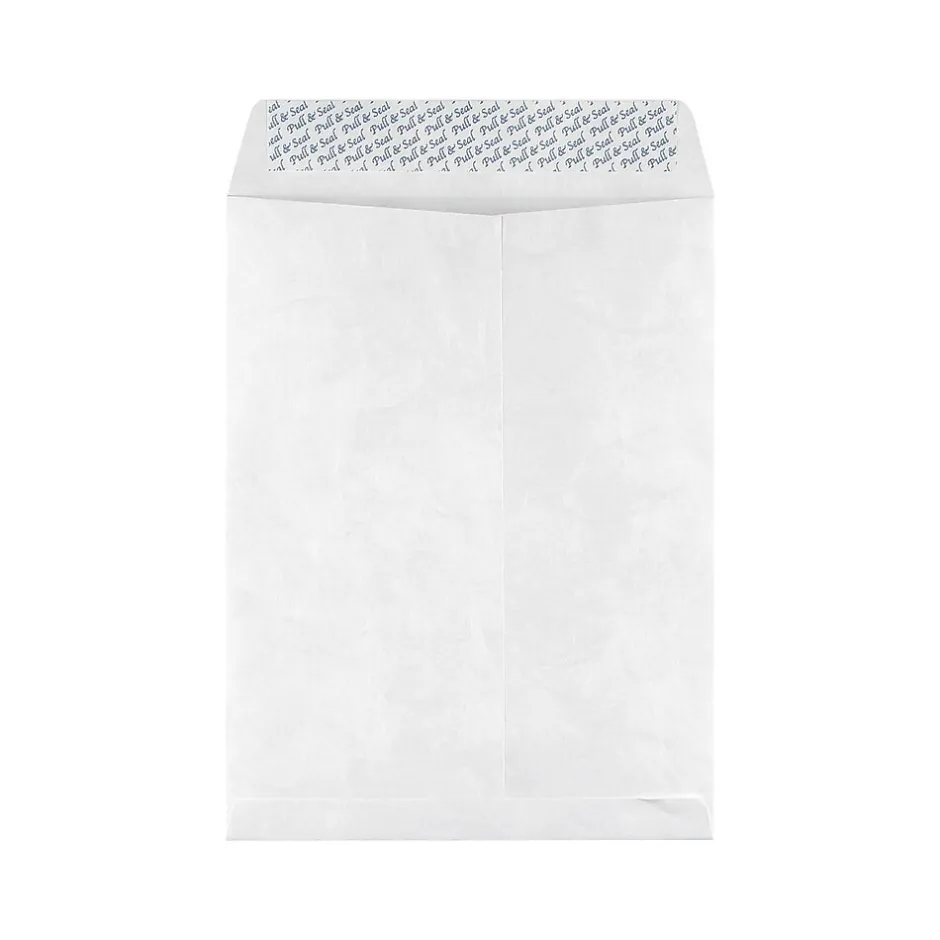 Mail booklets, flyers and promotional brochures in these Staples Tyvek EasyClose catalog envelopes. The peel-and-seal closures keep items neatly tucked inside, while the white color blends seamlessly with mailing labels for a professional appearance. Crafted from sturdy 14-pound , these Staples EasyClose catalog envelopes withstand rips and tears to shield your documents from potential damage during the shipping process.