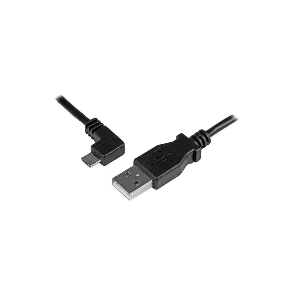 The StarTech black left-angled charge-and-sync cable offers the full power you need to charge your mobile devices faster. The Micro-USB connector lets you connect to is perfect for charging your smartphones. This data transfer cable measures 3′ and comes with PVC jacket for durability.