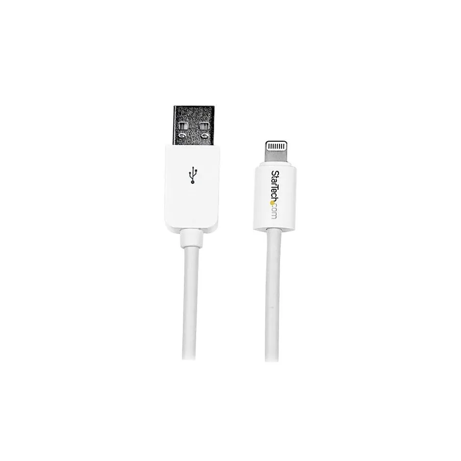Startech.com® 1 M lightning connector to USB cable is white in color and is compatible with apple iPad, iPhone and iPod. Cable is nickel plated and has polyvinyl chloride jacket along with approximate weight of 1.09 oz.