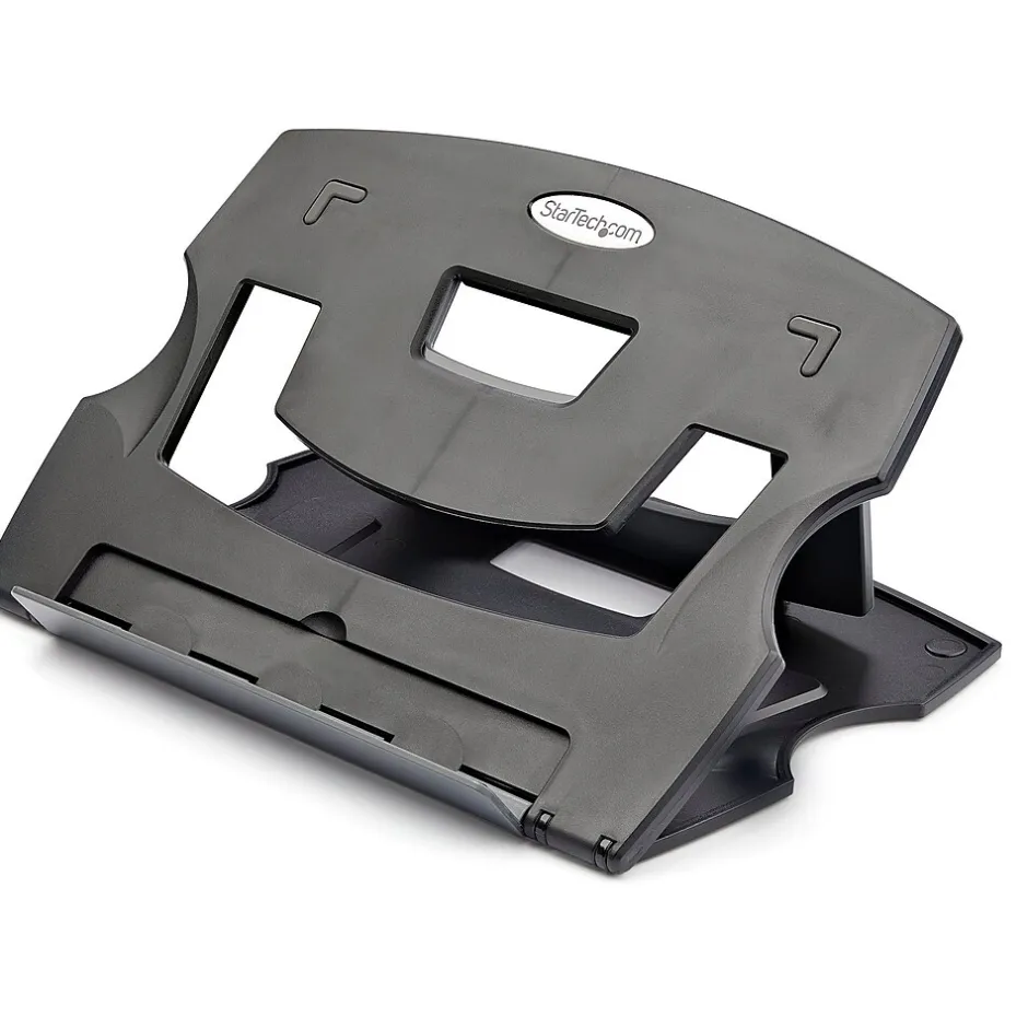 - Work in comfort by positioning your laptop closer to eye level with six adjustable angle settings