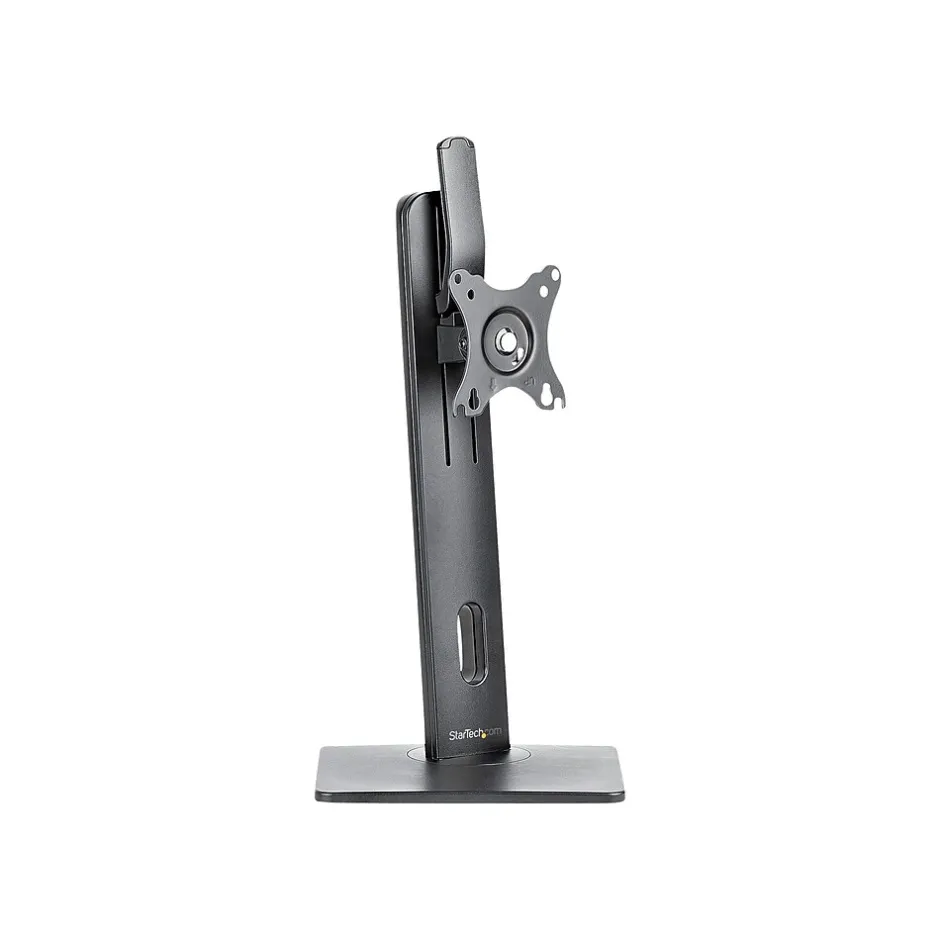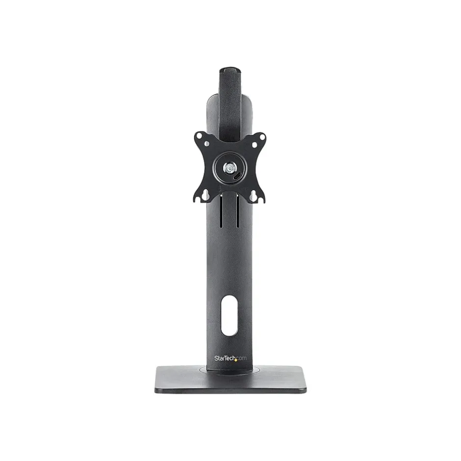 Free-standing Monitor Stand with Rotating Base – Full Motion Articulation – Spring-assisted One-touch Height Adjustments This single monitor stand enables you to raise your monitor off your desk or table to save space while increasing your productivity. With its durable aluminum construction and a sturdy base (7.8″x9.4″ / 200mm x 240mm), it can support VESA compatible displays up to 32″ and up to 15.4lb / 7kg in weight. The power coated black semi-gloss finish on the support column provides a professional and modern look that will match your monitor and workstation. Please refer to our technical specifications section for more information on the different aspect ratios supported. Adjust your monitor to the ideal position The free-standing monitor stand features a wide range of motion so you can position your monitor to the ideal viewing angle, allowing you to work more comfortably and reduce eye and neck strain. You can easily tilt +/-15°; swivel +/-180°; and make height adjustments to fully adjust your monitor so it can meet your ergonomic needs. With a rotating base, this monitor stand lets you swivel your display a total range of +/- 40°. Easy one-touch height adjustments The spring-assisted monitor stand offers a total adjustment range of 10.4″ to 16.3″ (265mm to 415mm) from the surface or your desk. Height adjustments are easy to make with the built-in easy-access lever at the top of the stand. Keep a tidy setup and protect your desk This monitor stand lets you keep an organized desk/workstation with the built-in cable management slot at the lower portion of the column. It is equipped with rubber anti-slip pads that will keep your desk or table surface protected from scratches or scuffs. FPPNEUSTND is backed by a StarTech.com 5-year warranty and free lifetime technical support.
