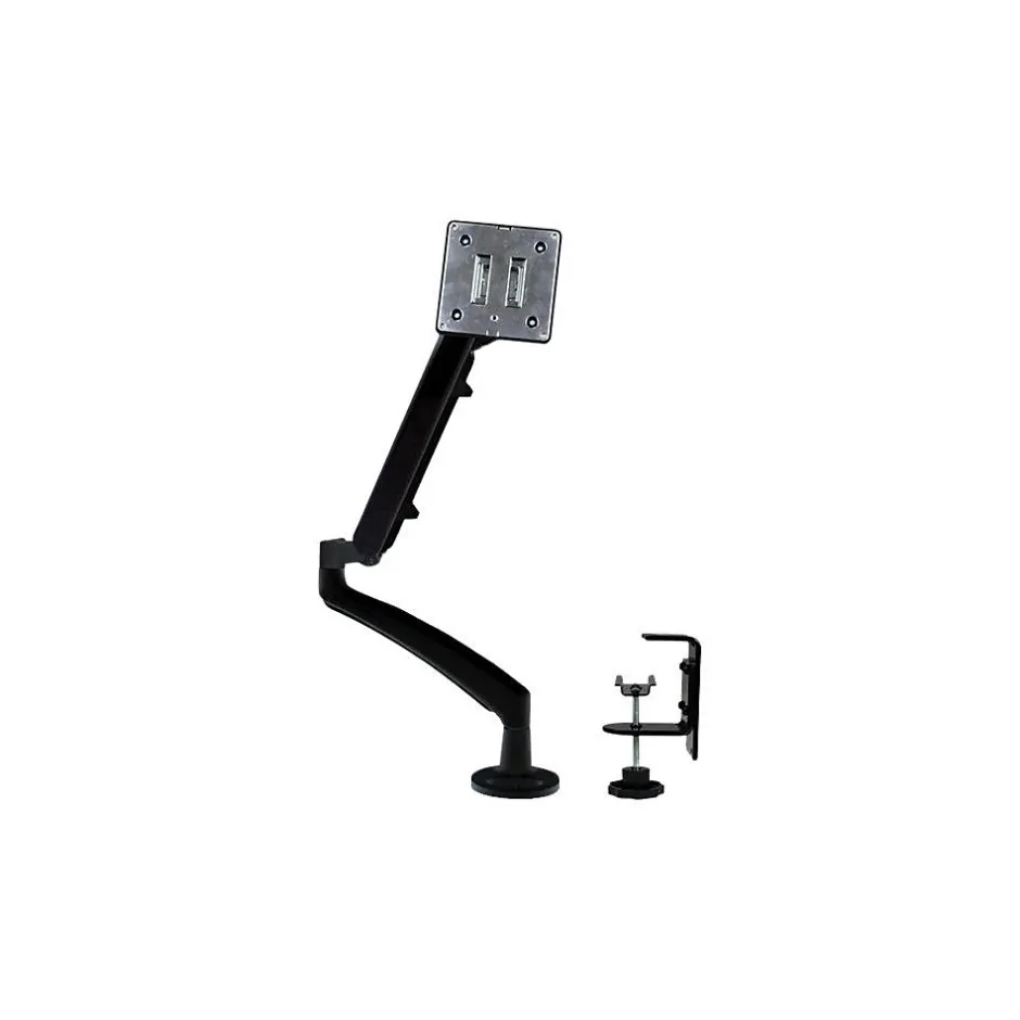 The StarTech ARMSLIM black slim articulating monitor arm allows you to mount a flat-panel display on your desk or table, with dynamic adjustments. It supports simple landscape-to-portrait display rotation for viewing longer pages or blocks of code without having to scroll down your screen. Monitor supports flat panel display up to a maximum weight capacity of 15lbs. The versatile monitor arm lets you extend, tilt, pan, swivel and pivot your display with a full range of motion across multiple axes.