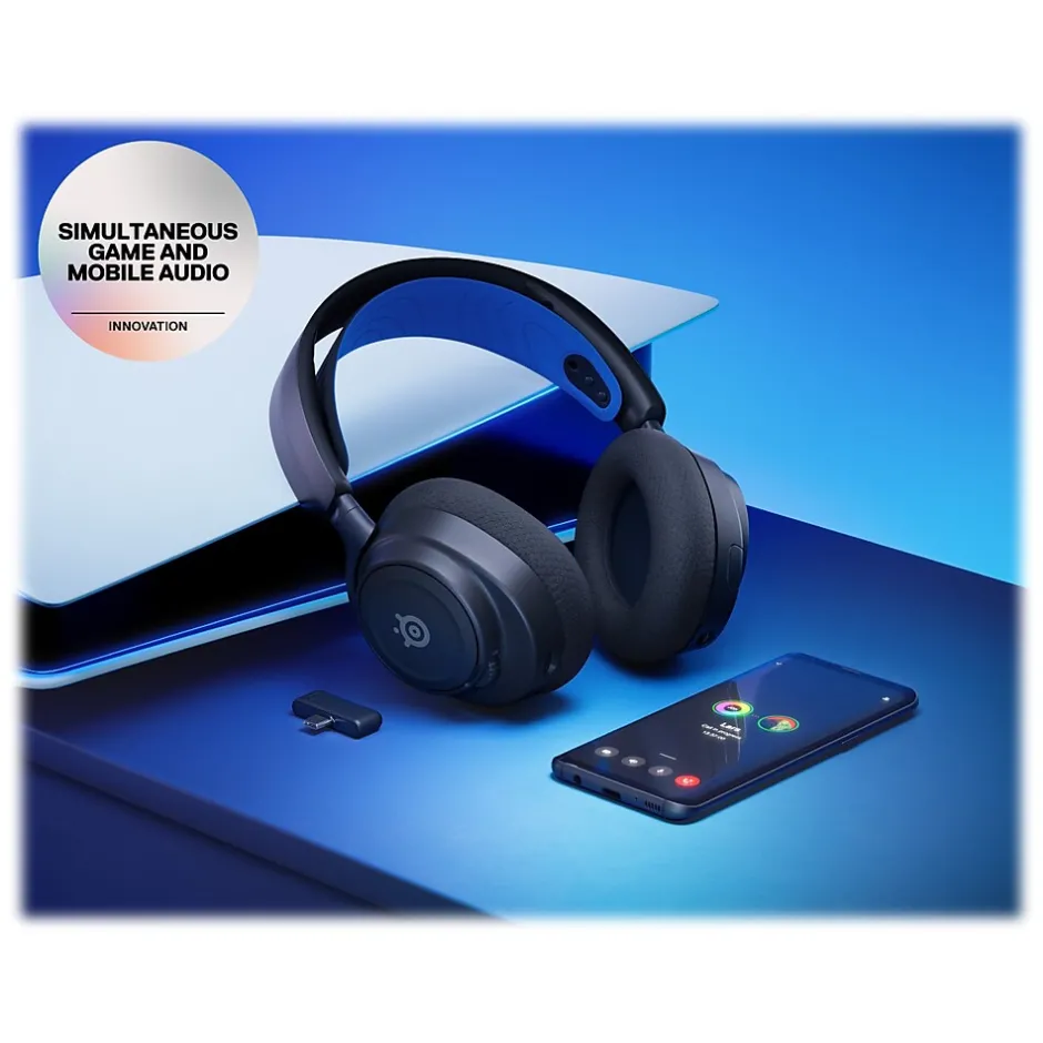 Challenge your perceptions of gaming headsets with the best-in-class Nova Acoustic System, with powerful, custom-designed High Fidelity Drivers. Crystal clear high notes, precise mid-range, and deep bass fills your ears as the drivers work together with SteelSeries Sonar Audio Software Suite. Hear an opponent’s position with 360-degree Spatial Audio and immediately identify the direction for your next move. Immersive audio surrounds you from every angle, putting you at the center of the action for an in-game advantage. Take complete control over your sound with the Pro-grade Parametric EQ, a first in gaming. SteelSeries Sonar Audio Software Suite gives you X-Ray Hearing to identify footsteps and other key in-game sounds enabled by presets from esports pros to gain the advantage. Seamlessly swap between multiple devices with the pocket-size USB-C dongle*, bringing 2.4GHz wireless to your PlayStation, PC, Mac, or Switch. Perfect for long sessions, the Arctis Nova 7P Wireless features expanded fitting options with 4 points of adjustment. Easily find the perfect fit with new height-adjustable rotating earcups, a stretchy overhead band, and breathable AirWeave memory foam cushions. Constructed around a PVD-coated steel headband, the all-new design is up to 14% lighter than previous generations.