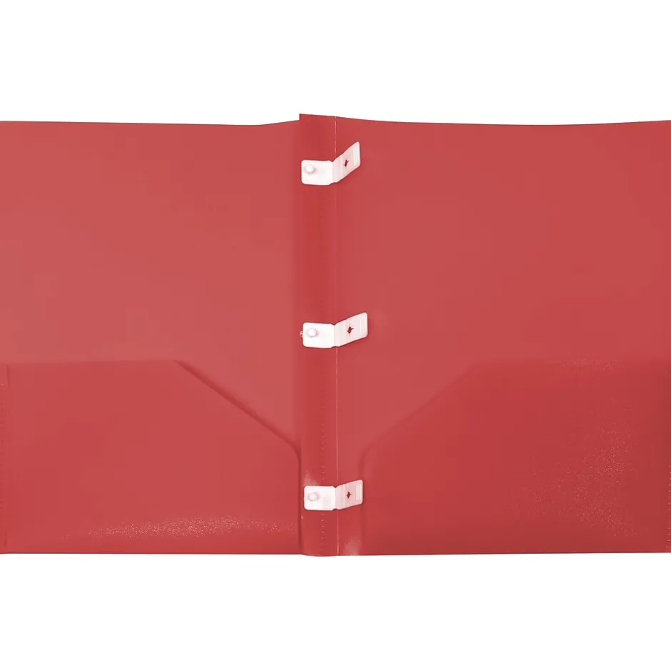 Storex folders and report covers are made from a thick poly material which will not tear or, crack, or fray. The covers feature plastic prongs which are safer to use than metal tangs.