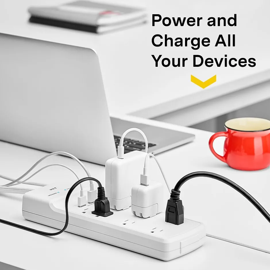 Protect electronics from dangerous energy spikes by using this surge protector. Eight AC outlets let you connect appliances or other electronics, while two USB ports let you charge mobile devices conveniently. Enjoy up to 2100 joules of power surge protection for your devices and data. This NXT Technologies™ surge protector features a compact design and a 6-foot braided cord for added durability, as well as cord management features to keep your cables clear and organized.