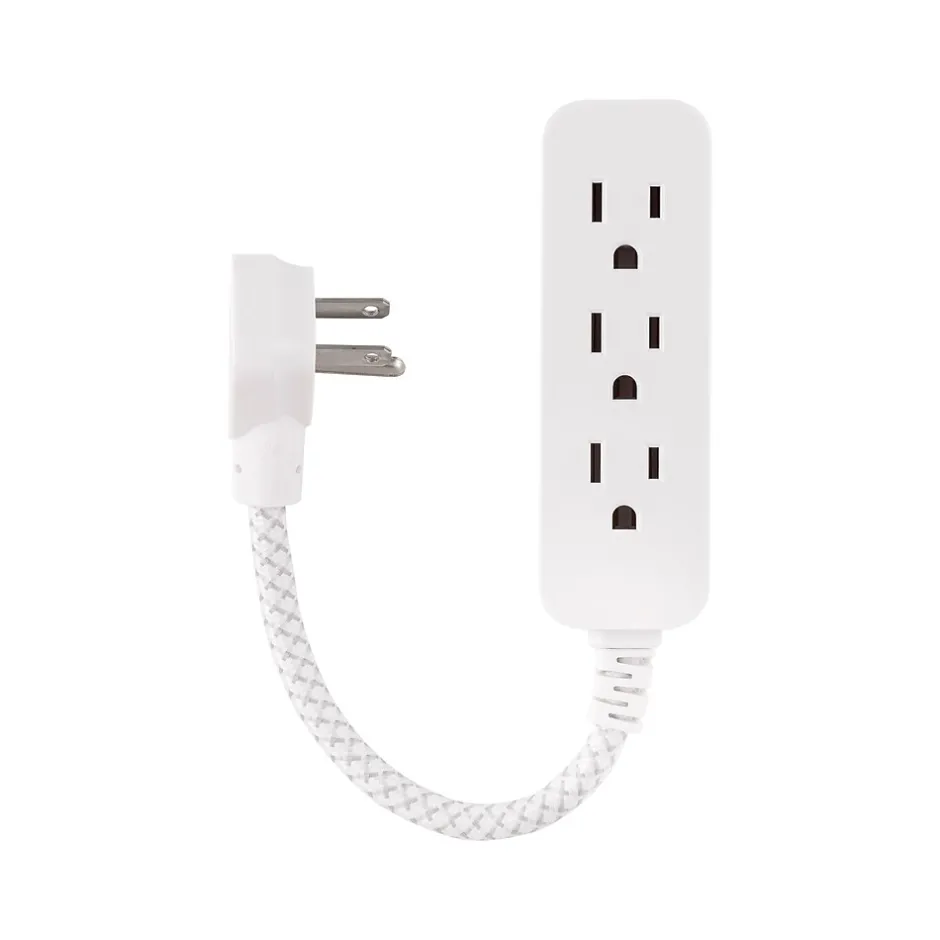 Your power does more with the Philips three-outlet extension cord with surge protection. Converting one outlet into three, this powerful extension cord adds more outlets where you need them most and keeps your electronics protected from dangerous power surges. The surge protector features a surge protection rating of 250 joules to ensure your electronics are safeguarded from voltage spikes. The surge protector’s 6″ braided fabric power cord is connected to a flat plug, allowing it to plug in easily behind desks, sofas, and other furniture. Featuring a white and gray pattern, the decorative, woven fabric increases the cable’s durability, is tangle-resistant, and adds instant style to any space. For use in grounded (three-prong) outlets only, this product comes with a UL listing to ensure your surge protector is backed by the high standards of safety and performance. Your outlet deserves an upgrade with the Philips three-outlet extension cord with surge protection.