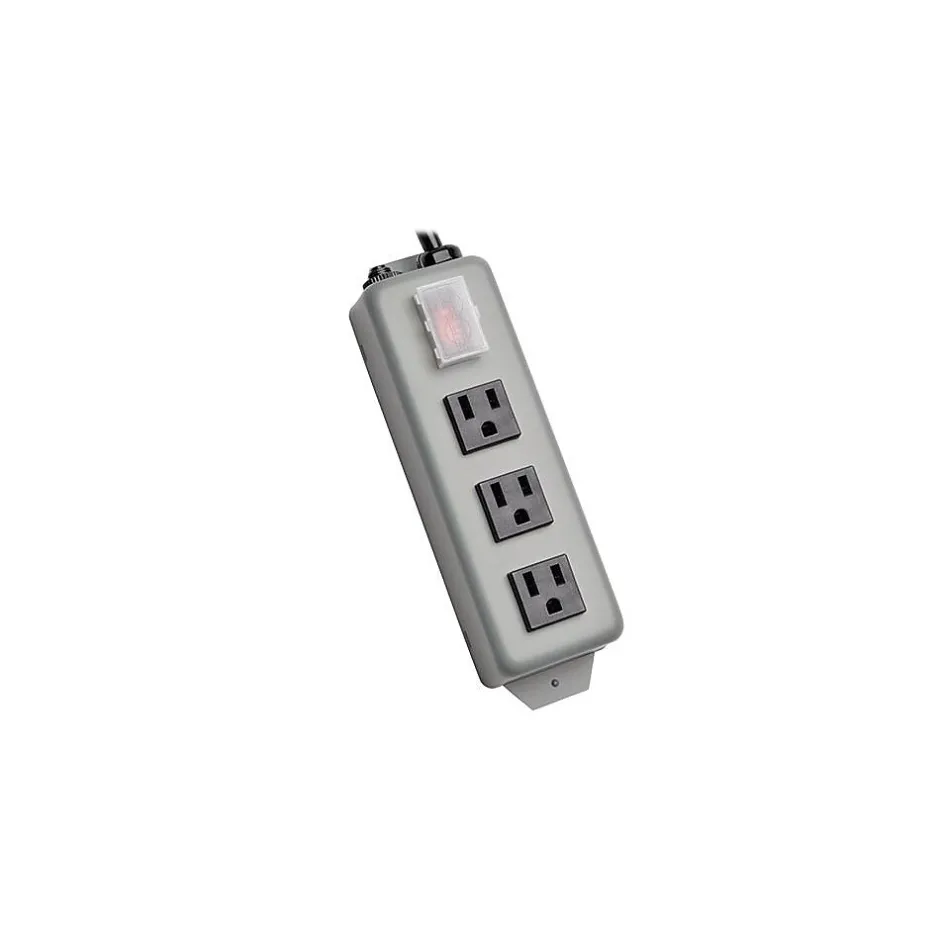 The Tripp Lite 3SP9 Waber 3-outlet industrial power strip in black, has transparent switch cover that eliminates the accidental shutdowns. The lighted on/off switch confirms the operation at a glance. The 9′ power strip has keyhole mounting tabs that enable mounting in variety of surfaces. The power strip illuminates 2-position switch that controls the power all the outlets. It is compatible with power tools, lighting and other electrical equipment in both industrial and commercial.