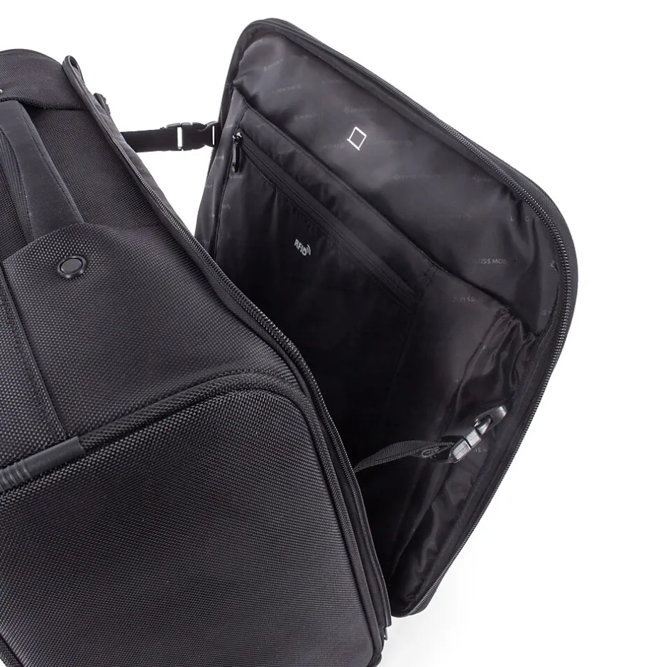 Swiss Mobility offers a plethora of durable, well made, stylish and tech inspired products enabling you to live your adventure. Our Purpose Rolling case offers a 15.6” laptop compartment with quick front access pockets and organizational sections. Using RFID patented technology all your personal information will remain secure. Made of ballistic nylon this rolling case is a stylish and durable tank on 360 degree spinner wheels.