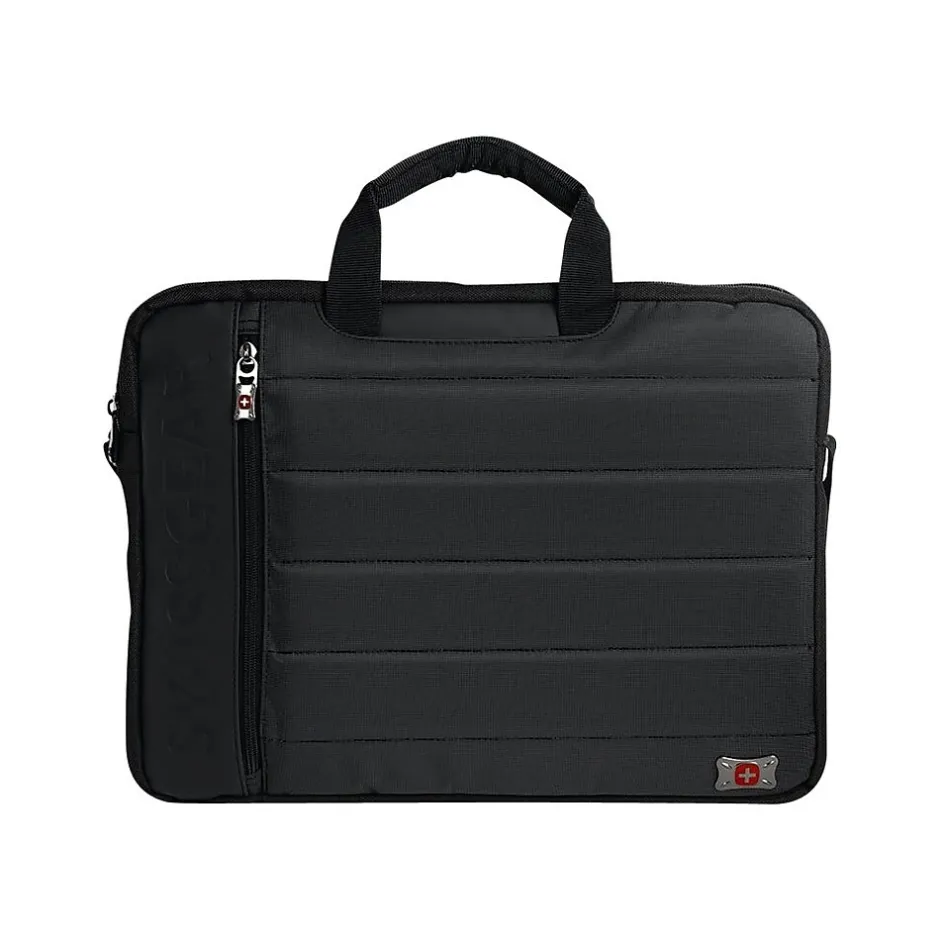 The Swissgear Anthem 17″ Laptop Slimcase Bag is designed to be your go-to digital bag. Made with quality materials and lasting hardware, keep your digital necessities safe and secured inside this multi-compartment case. A large organizer compartment lets you easily access your things from divider pockets while a designated laptop compartment can hold up to a 17″ laptop. Streamlined with versatility, grab its padded handles or sling its adjustable strap around your shoulders. An add-a-bag strap lets you conveniently attach this case to your favorite spinner. Complete with an emblazoned SWISSGEAR logo, rely on this bag to transport your office or campus essentials.