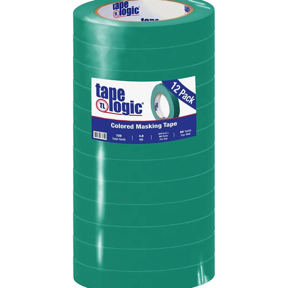 Tape Logic™ Masking tape in dark green color measures 3/4″ x 60 yds and is used to color-code shipments or for inventory identification. Tape offers good initial adhesion and is ideal for indoor and room temperature applications, sold as 12 per case.