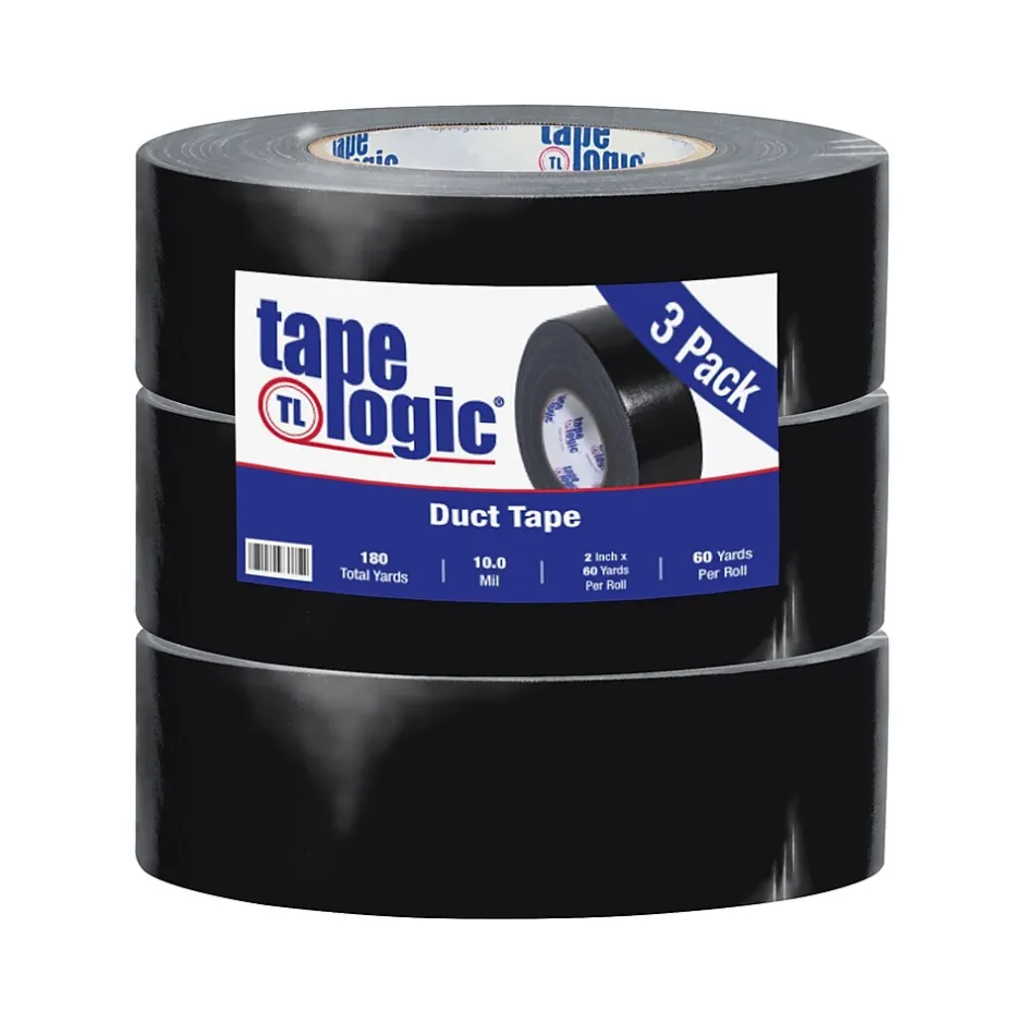 Tape Logic™ Industrial cloth duct tape in black color measures 2″ x 60 yds and offers 18 percent elongation at break. Tape is designed to use in wrapping or sealing applications and sold as 3 per pack.