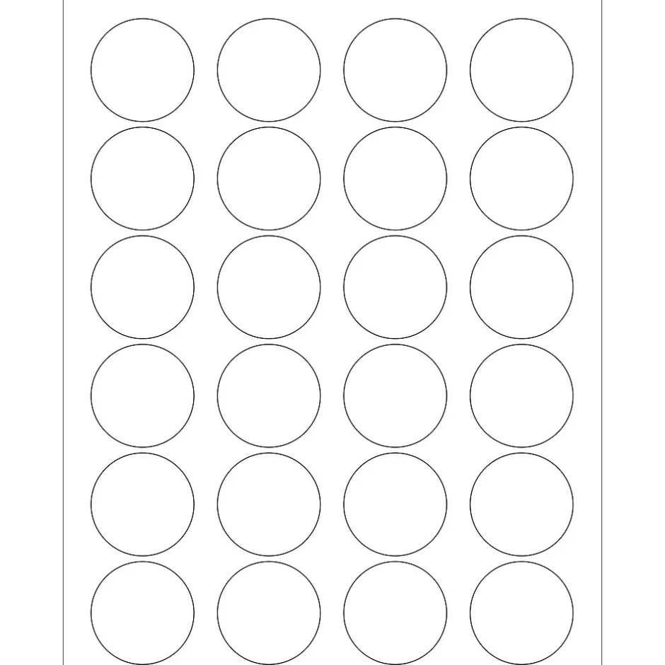 1.625″ White Circle Laser Labels. Use to create your own product or mailing labels. Labels work with both Laser and ink jet printers. Permanent adhesive. Labels stick to a variety of smooth surfaces including paper, corrugated, plastic, wood, glass and metal.