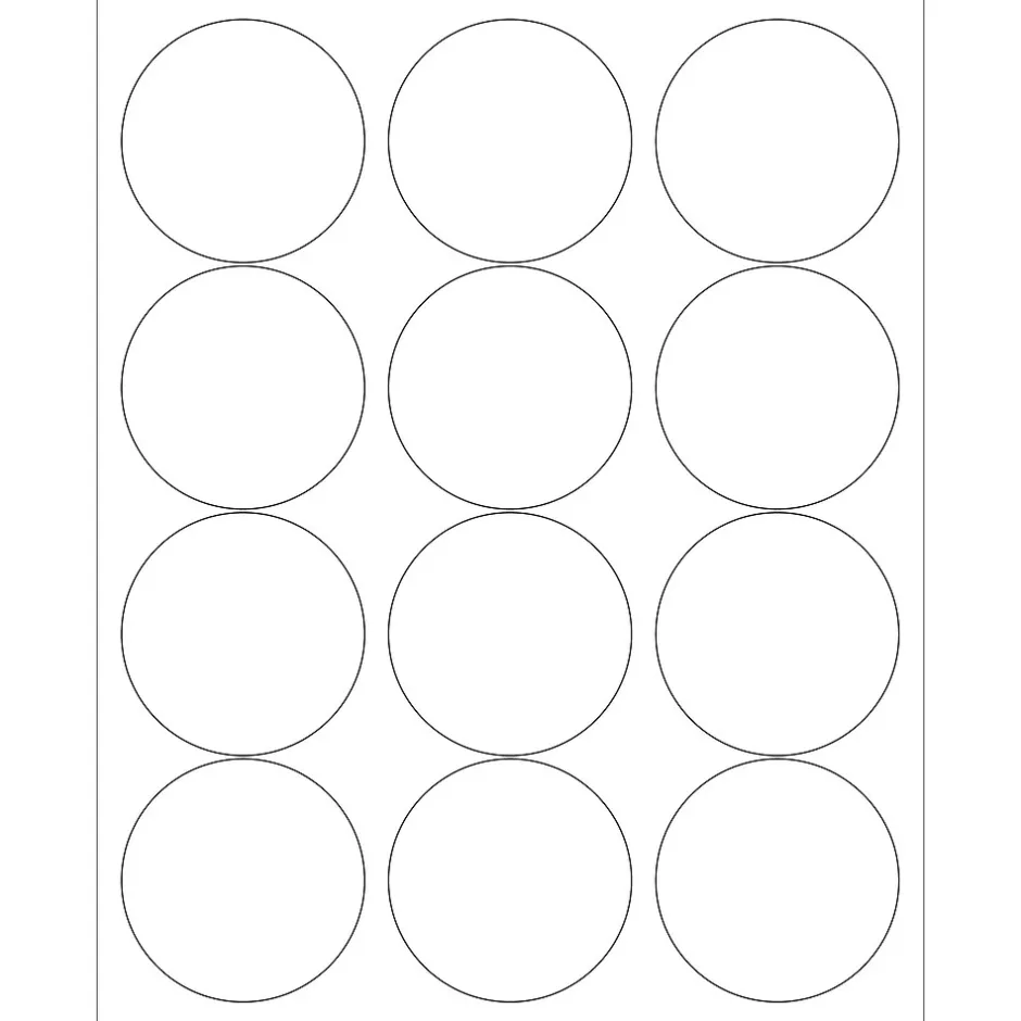 2 1/2″ White Circle Laser Labels. Use to create your own product or mailing labels. Labels work with both Laser and ink jet printers. Permanent adhesive. Labels stick to a variety of smooth surfaces including paper, corrugated, plastic, wood, glass and metal.