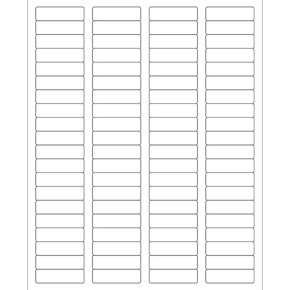 1 3/4″ x 1/2″ White Rectangle Laser Labels. Use to create your own product or mailing labels. Labels work with both Laser and ink jet printers. Permanent adhesive. Labels stick to a variety of smooth surfaces including paper, corrugated, plastic, wood, glass and metal.