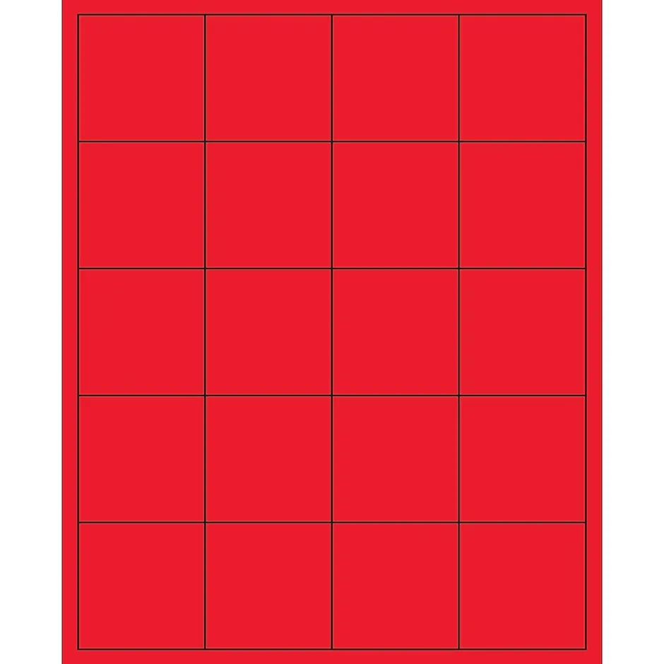 2″ x 2″Fluorescent Red Rectangle Laser Labels. Use to create your own product or mailing labels. Labels work with both Laser and ink jet printers. Permanent adhesive. Labels stick to a variety of smooth surfaces including paper, corrugated, plastic, wood, glass and metal.