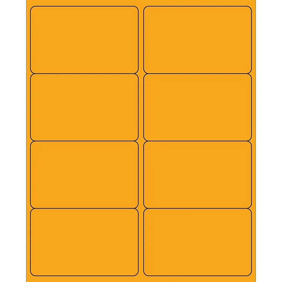 4″ x 2 1/2″ Fluorescent Orange Rectangle Laser Labels. Use to create your own product or mailing labels. Labels work with both Laser and ink jet printers. Permanent adhesive. Labels stick to a variety of smooth surfaces including paper, corrugated, plastic, wood, glass and metal.