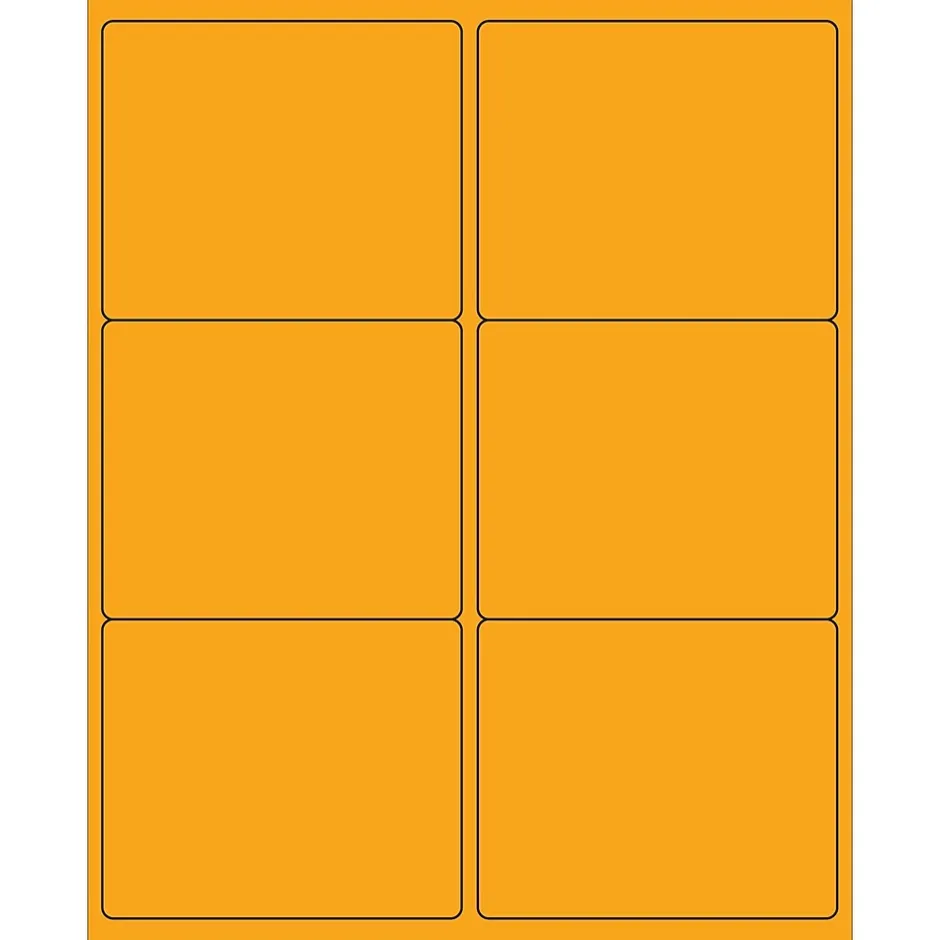 4″ x 3 1/3″ Fluorescent Orange Rectangle Laser Labels. Use to create your own product or mailing labels. Labels work with both Laser and ink jet printers. Permanent adhesive. Labels stick to a variety of smooth surfaces including paper, corrugated, plastic, wood, glass and metal.