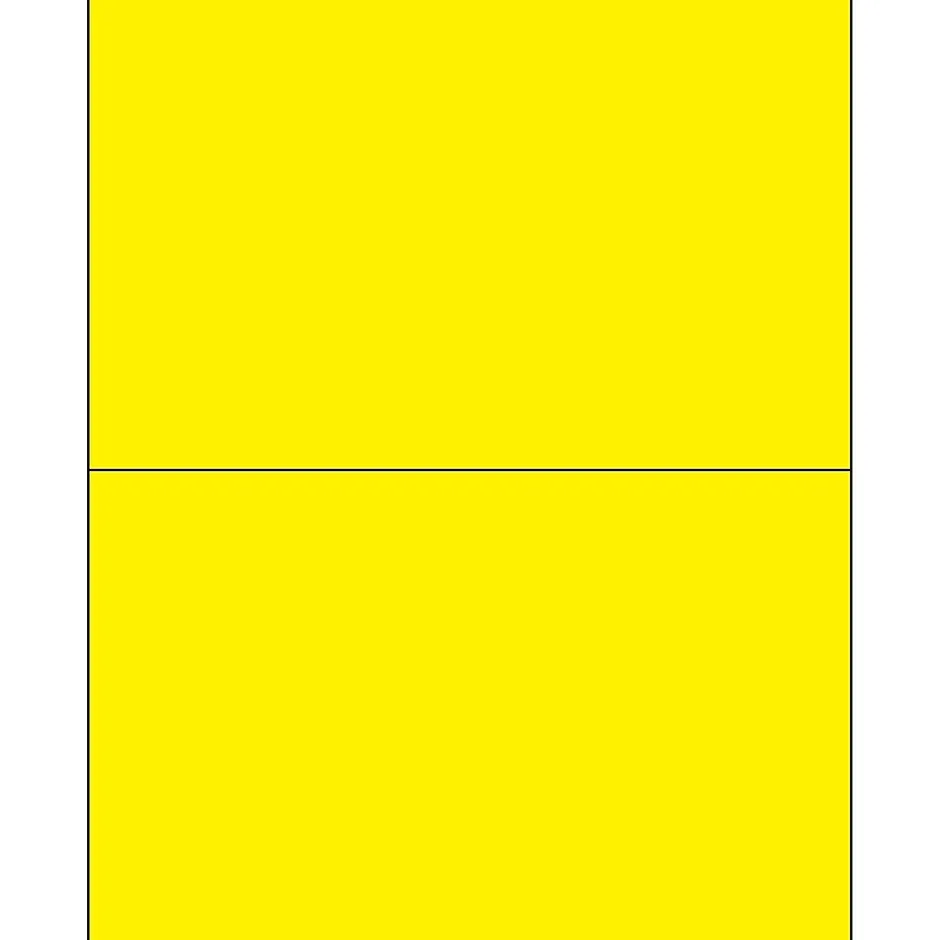 8 1/2″ x 5 1/2″ Fluorescent Yellow Rectangle Laser Labels. Use to create your own product or mailing labels. Labels work with both Laser and ink jet printers. Permanent adhesive. Labels stick to a variety of smooth surfaces including paper, corrugated, plastic, wood, glass and metal.